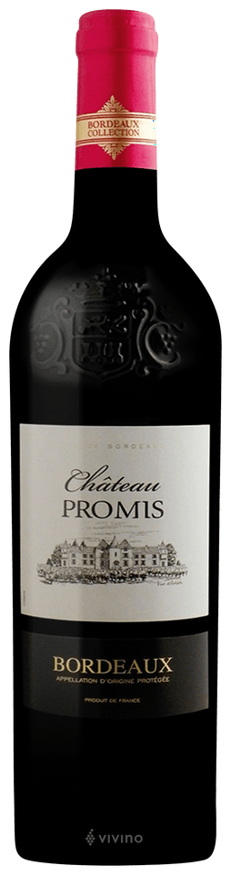 Rượu vang Pháp Chateau Promis Bordeaux có xuất xứ từ tỉnh Bordeaux , miền tây của nước Pháp . Và giống nho Cabernet Sauvignon là nguyên liệu chính để sản xuất rượu vang đỏ Chateau Promis Bordeaux . Vỏ mỏng, màu tím thẫm, hàm lượng tannin dồi dào là đặc điểm của giống Nho này . Tannin được xem là chất xúc tác giúp rượu vang có thể trữ được trong thời gian rất lâu. Rượu để càng lâu uống càng ngon , những chai Vang đã trên 10 năm đều có hương vị tuyệt vời.